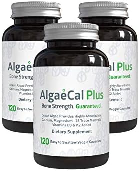 AlgaeCal Plus – Plant-Based Calcium Supplement with Magnesium, Boron, Vitamin K2 + D3 | Increase Bone Strength | All Natural Ingredients | Highly Absorbable | 120 Veggie Capsules per Bottle (3 Pack)