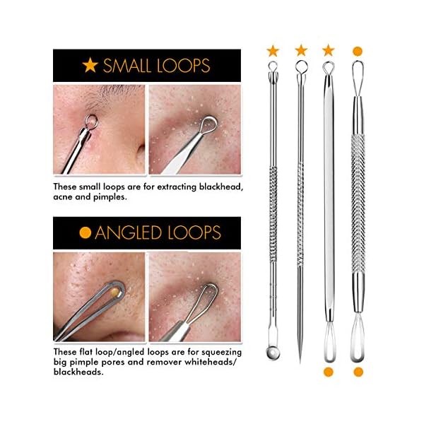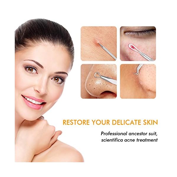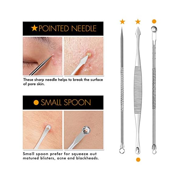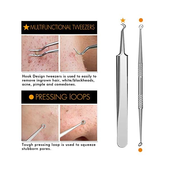 🎀BEST QUALITY-Blackhead Extractor Kit includes 7 professional quality tools made of Stainless Steel. The professional electroplated needle won’t cause sensitivity issues and works on all types of skin.