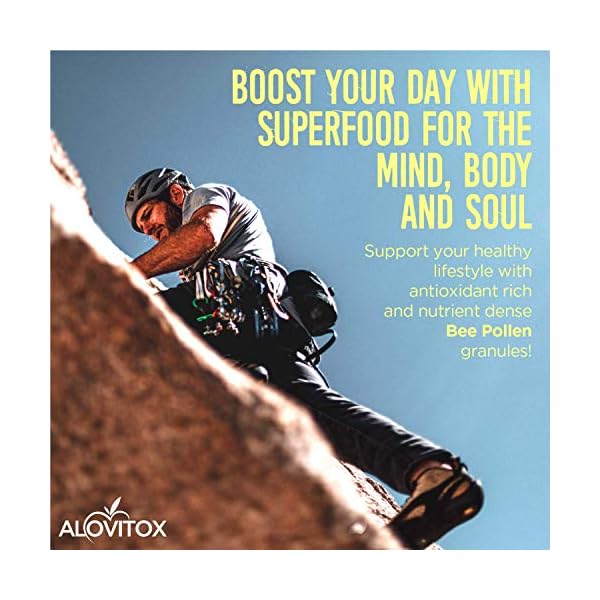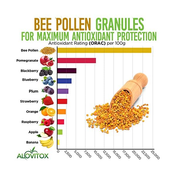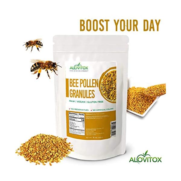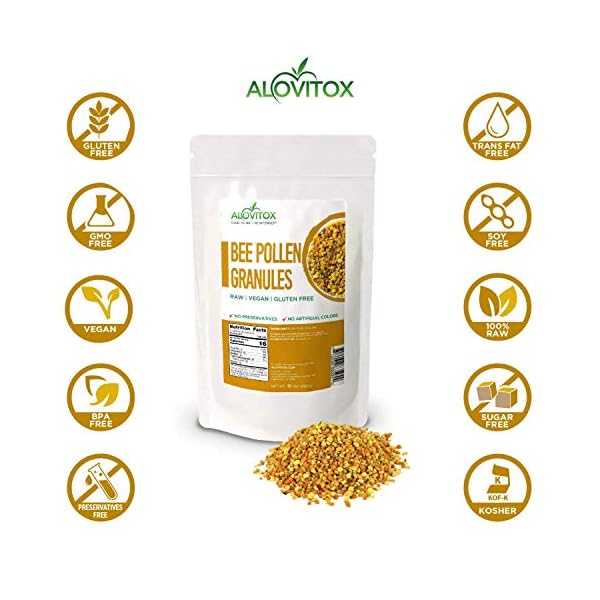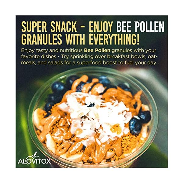 DELICIOUS AND EASY TO USE- ALOVITOXRaw Bee Pollen Granules are 100% pure and natural with a pleasantly sweet and floral flavor.Simply sprinkle a spoonful over your favorite shakes, smoothies, breakfast bowls, yogurt, oatmeal and even salads for a tasty and nutritional boost!