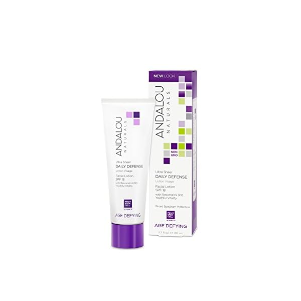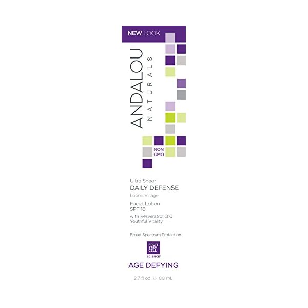 Andalou Naturals Ultra Sheer Daily Defense Facial Lotion, SPF 18, 2.7 oz, with Resveratrol CoQ10 and Antioxidants…