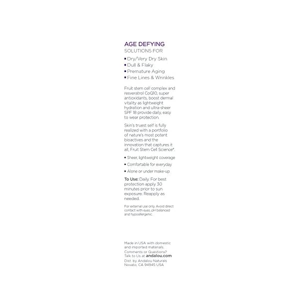 AGE DEFYING, NATURE INSPIRED: Andalou Naturals Age Defying skincare products help hydrate dry skin & fight fine lines & wrinkles with restorative antioxidants. Use as directed to support a youthful look.