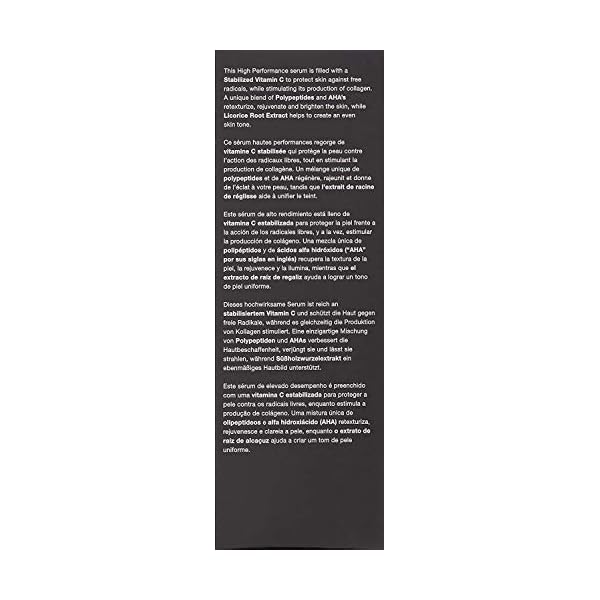 Our High Performance Vitamin C Facial Serum is a clear gel treatment that helps lighten, brighten, and even skin tone. Enriched with stabilized vitamin C to protect skin against free radicals while supporting the natural production of collagen. A unique blend of polypeptides and AHAs retexturize, rejuvenate, and brighten while licorice root extract evens skin tone for a smooth, fresh complexion.
