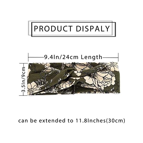 SIZE: girth 17″; wide 3″-4.5″, length 9.4″ can be stretched up to 12″; wide headbands one size fit most, elastic, very soft and stretchy.