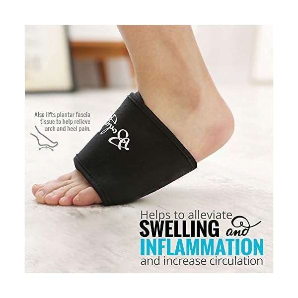 Helps to alleviate swelling and inflammation and increase circulation. Also lifts plantar fascia tissue to help relieve/cure arch and heel pain.