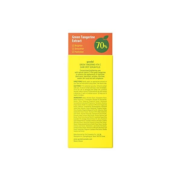 [10x MORE VITAMIN C IN OUR SERUM] Our Vita C Dark Spot Serum+ contains 70% of green tangerine extract full of vitamin C derivatives. Green tangerines contain up to 10x more vitamin C than their mature counterparts, and we’ve captured every drop into our serum.