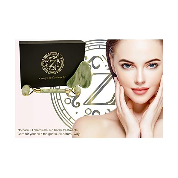 Jade Roller and Gua Sha Set – Luxury Facial Skincare Set by Zamlinco – Jade Stone Anti-Aging Skin Care Tools for Face…