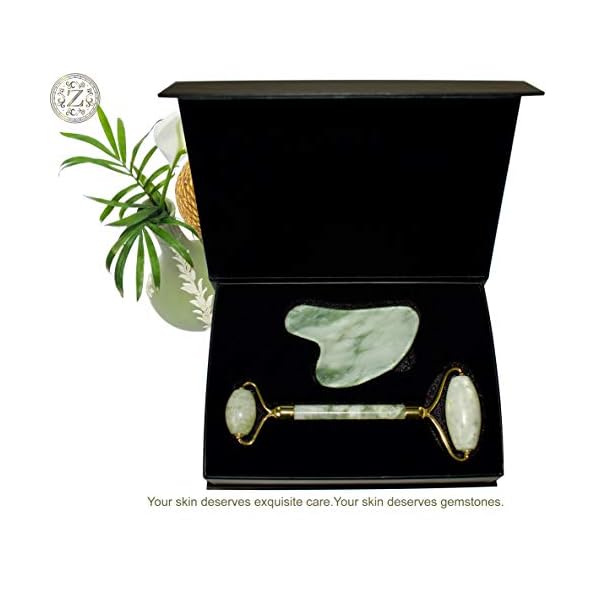 You are here: Products Jade Roller and Gua Sha Set – Luxury Facial Skincare Set by Zamlinco – Jade Stone Anti-Aging Skin Care Tools for Face…