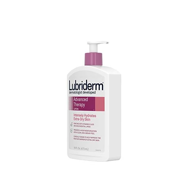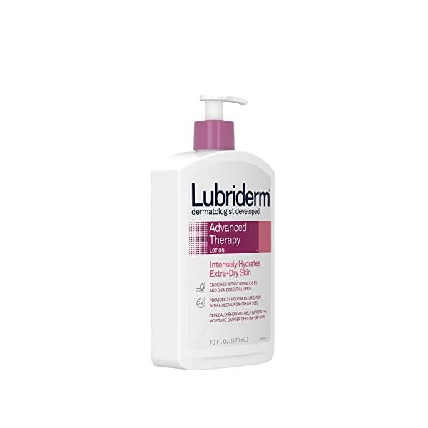 Lubriderm Advanced Therapy Daily Moisturizing Lotion soothes and helps relieve extra-dry skin. From a dermatologist-developed brand, this lotion is clinically shown to help moisturize for 24 hours, and transform dry skin into healthy-looking, more resilient skin. Formulated with vitamins E and B5 plus skin-essential lipids naturally found in healthy skin, this moisturizing lotion replenishes and strengthens your skin’s moisture barrier. Plus, its formula is non-greasy with a clean, comfortable feel.