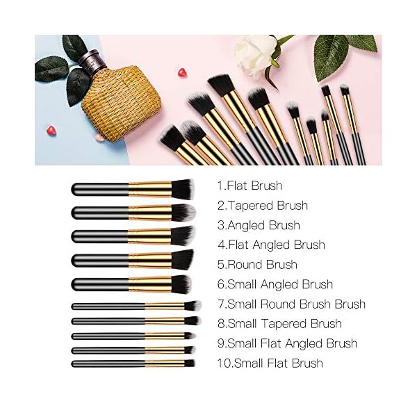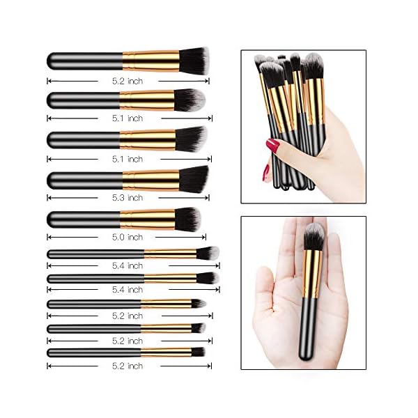 【Classical Fashion Design】This makeup brush set looks very chic and fashionable in the most classical golden black color. High quality wooden handle gives the best control of grip while applying make-up. A must-have in your makeup collection, a great gift for makeup lovers!