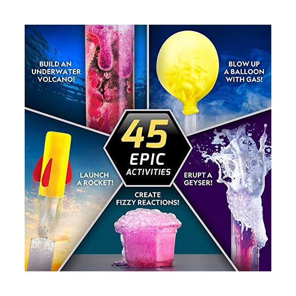 A TOTAL OF 45 EXPERIMENTS – Your kids will build and erupt a volcano, create a geyser, launch a rocket, and cause some awesome chemical reactions! We know your kids will want to conduct even more science experiments so we’ve included a bonus experiment guide with 30 additional experiments that can all be done with common household items!