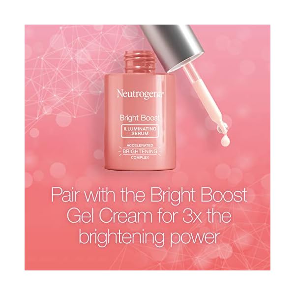 Neutrogena Bright Boost Illuminating Face Serum helps improve the look of skin tone, texture and clarity by reducing the appearance of dark spots and hyperpigmentation for brighter, wide awake skin. Our best brightening facial serum is formulated with naturally derived turmeric extract and our highest concentration of Neoglucosamine, a dermatologist preferred skin resurfacing and brightening ingredient, to gently exfoliate and resurface skin, leaving it looking smooth and luminous. As a building block of hyaluronic acid, Neoglucosamine also helps improve uneven skin tone, texture and redness, while also plumping, firming, and hydrating skin. The unique formula of this resurfacing face serum features dermatologist preferred technology that is proven to work on all skin tones and is oil-free, alcohol-free and non-comedogenic, so it won’t clog pores. Use with Bright Boost Gel Cream and Bright Boost Micro Face Polish to restore brightness and kick-start tired, dull skin.