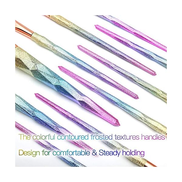 COLORFUL UNICORN HANDLES:The contoured frosted textures handles of these cosmetic brushes are designed for comfortable and steady holding, not easy sliding when doing makeup.