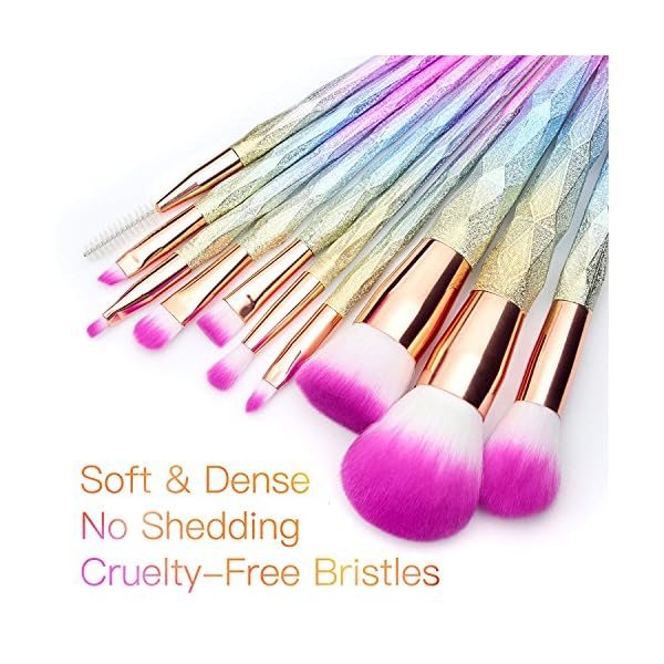 VEGAN SYNTHETIC BRISTLES: The soft bristles which are well made of synthetic fibers give a silky soft feeling on your skin by using this unicorn makeup brush. No shedding by connecting the pipes tightly.