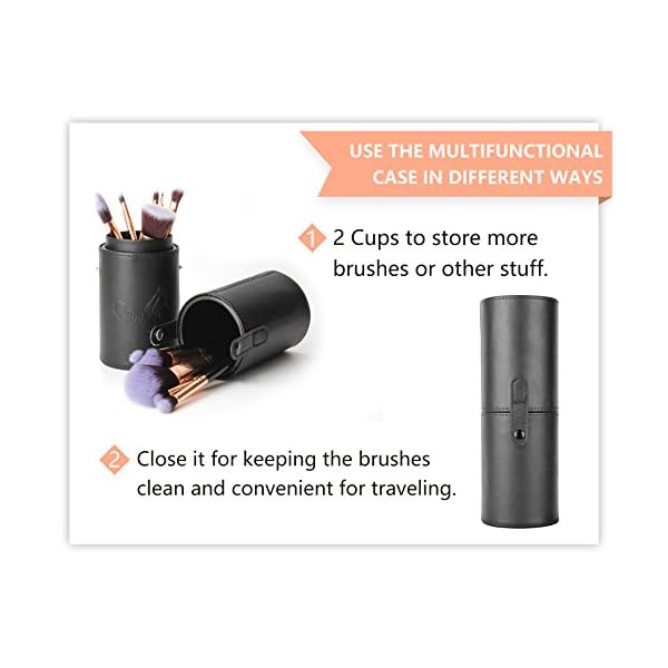 COME WITH A MULTIFUNCTIONAL BRUSH HOLDER: Made of vegan PU leather, 2 cups snap together, a unique case design allows you open it and have the brushes standing, while enclosing it is ideal for keeping the brush set clean and perfect as well for a travel brush case.