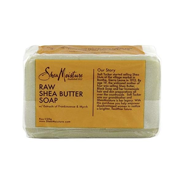 Gently cleanse and moisturize skin with this sulfate-free bar soap. Raw Shea works with Frankincense & Myrrh to hydrate and revitalize skin. Our Story: Sofi Tucker started selling Shea Nuts at the village market in Bonthe, Sierra Leone in 1912. By age 19, the widowed mother of four was selling Shea Butter, African Black Soap and her homemade hair and skin preparations all over the countryside. Sofi Tucker was our Grandmother and SheaMoisture is her legacy. With this purchase you help empower disadvantaged women to realize a brighter, healthier future. Ethically Traded Ingredients Sustainably Produced. Pioneering Community Commerce and Fair Trade Since 1912. Tested on the Tucker family for four generations. Never on animals.