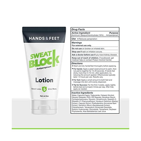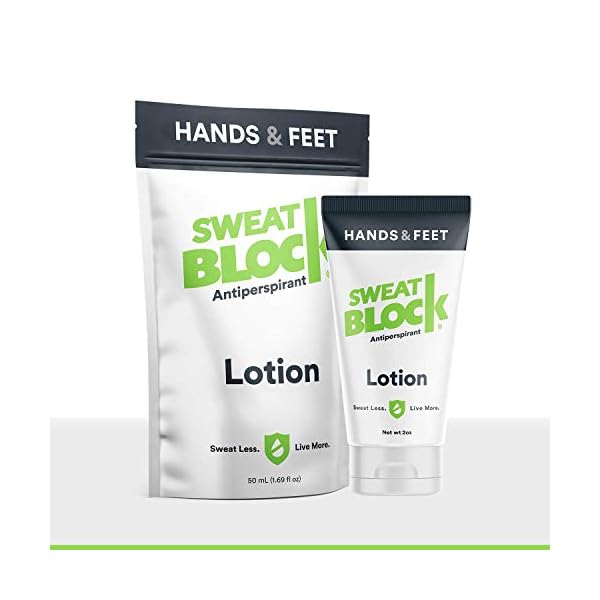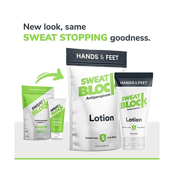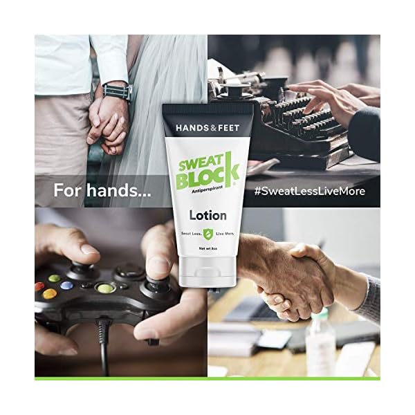 SHAKE HANDS WITH CONFIDENCE | SweatBlock antiperspirant for hands will stop sweat – shake and hold hands without worry. Only a pea sized amount needed to apply. Goes on as a lotion and then dries within minutes.