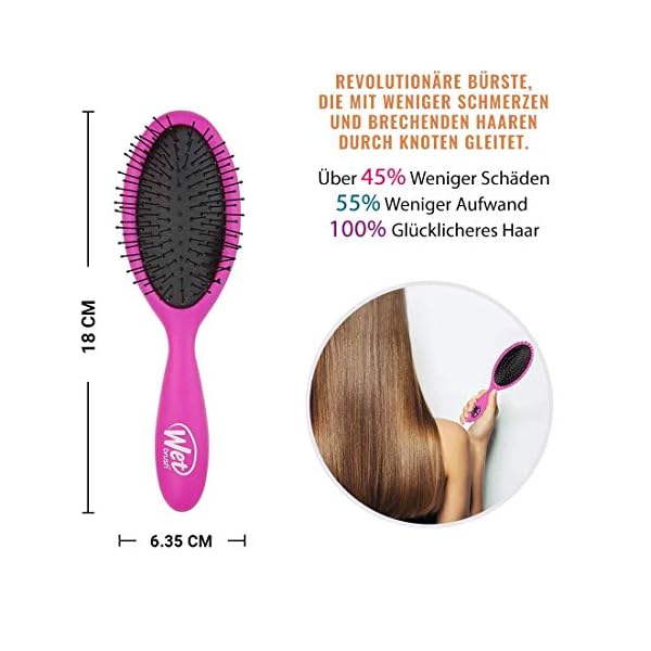 Wet Brush Original Detangler Hair Brush is made of Exclusive, ultra-soft IntelliFlex bristles that glide through tangles and knots with ease. The sturdy bristles gently massages the scalp while stimulating blood flow and strengthening your hair. Our Hair Brush is designed brilliantly to minimize pain and to protect hair against split ends and breakage. It lets you brush with less force so you can detangle with less damage to your hair.