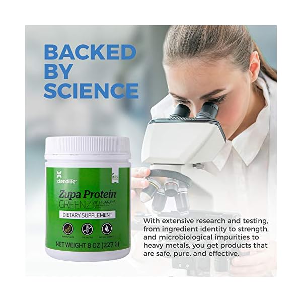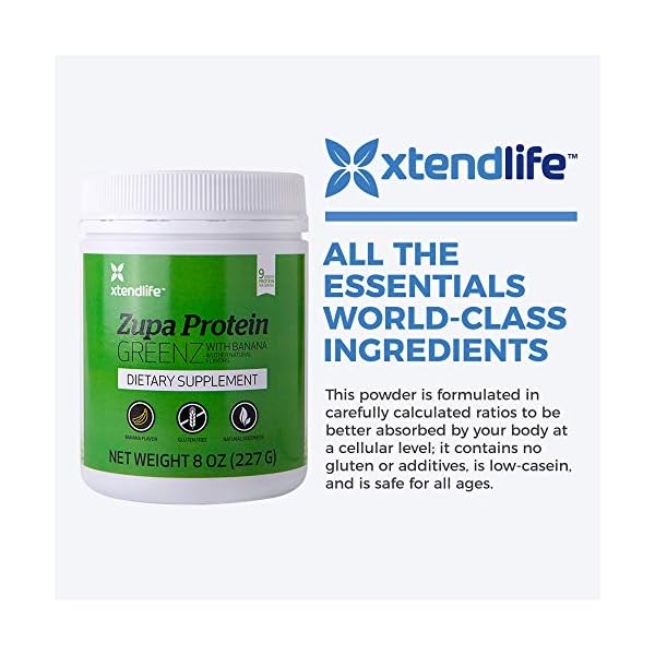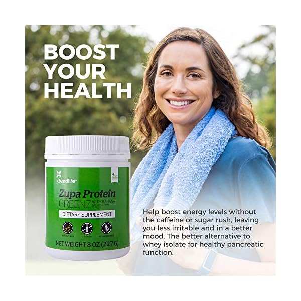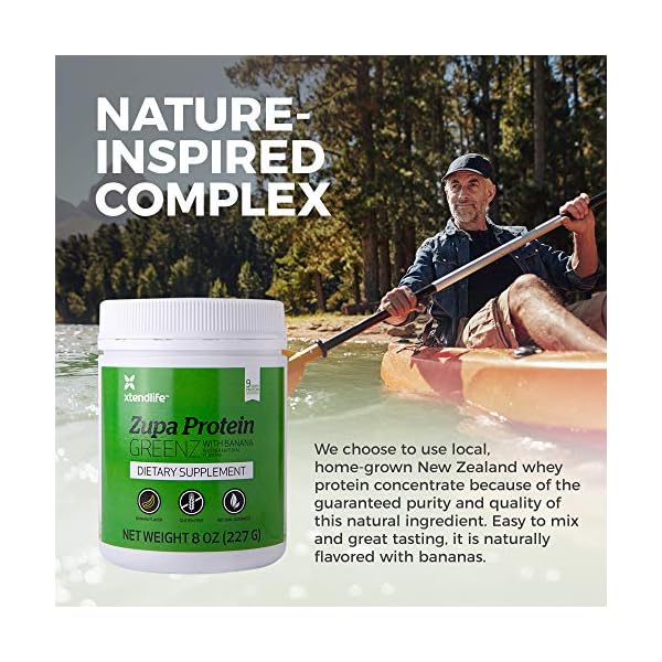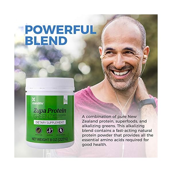 X-Tend Life Zupa Protein GREENZis designed to help your body maintain good nutrition, muscle tone, and a healthy pH balance. It combines pure New Zealand whey protein with alkalizing greens and contains all of the essential amino acids and BCAAs you need, while being naturally sweetened with stevia and banana for easy mixing and drinking.